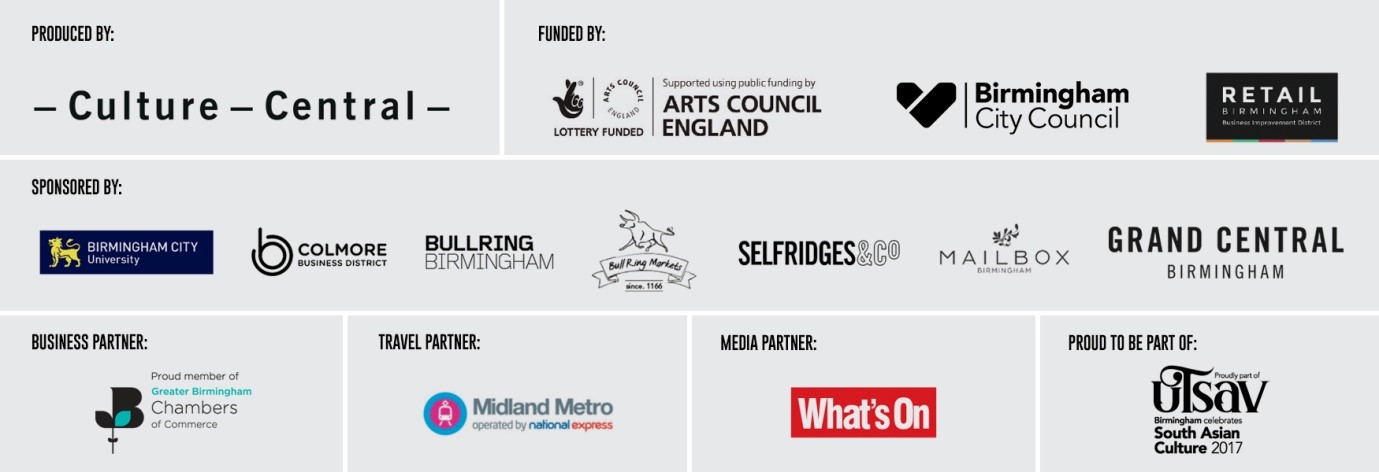 Birmingham Retail BID, Colmore BID, Bullring, Mailbox, Bull Ring Markets and BCU have confirmed as event sponsors alongside funding support from Birmingham City Council and Arts Council England. Greater Birmingham Chambers of Commerce at confirmed as Business Partner, Midland Metro are Travel Partner and What’s On are Media Partner for Birmingham Weekender 2017.