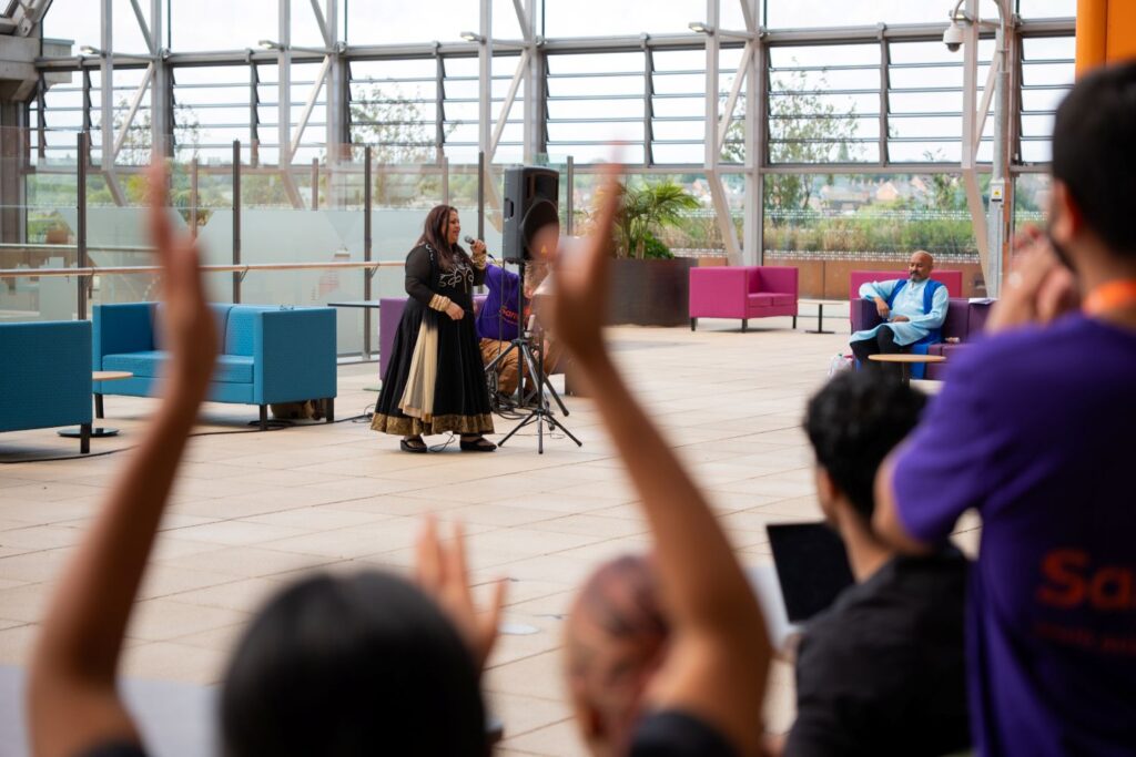 Sampad were thrilled to be part of this event, hosted at the Midlands Metropolitan University Hospital to mark South Asian Heritage Month, and filled to the brim with creativity, connection and celebration. It was a delight to support Sandwell and West Birmingham NHS Trust’s EDI and wellbeing initiatives for their healthcare workers. Our work sought to showcase the richness of South Asian arts and culture, whilst also providing moments of joy, reflection and togetherness.